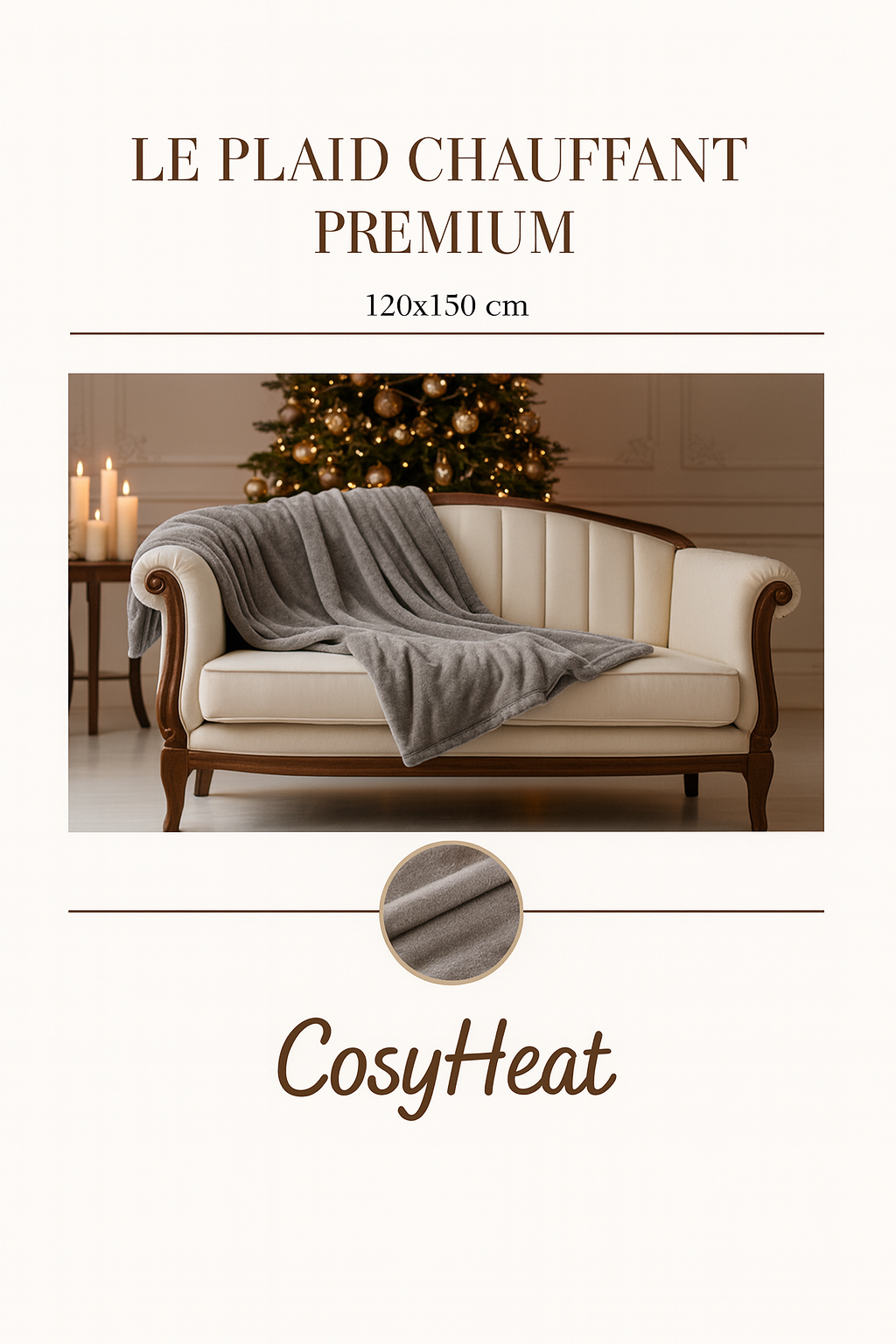 Découvrez CosyHeat, le plaid chauffant premium , chauffe en 30 secondes, ultra doux, 3 niveaux réglables et faible consommation. Le confort hivernal ultime, livré chez vous rapidement.